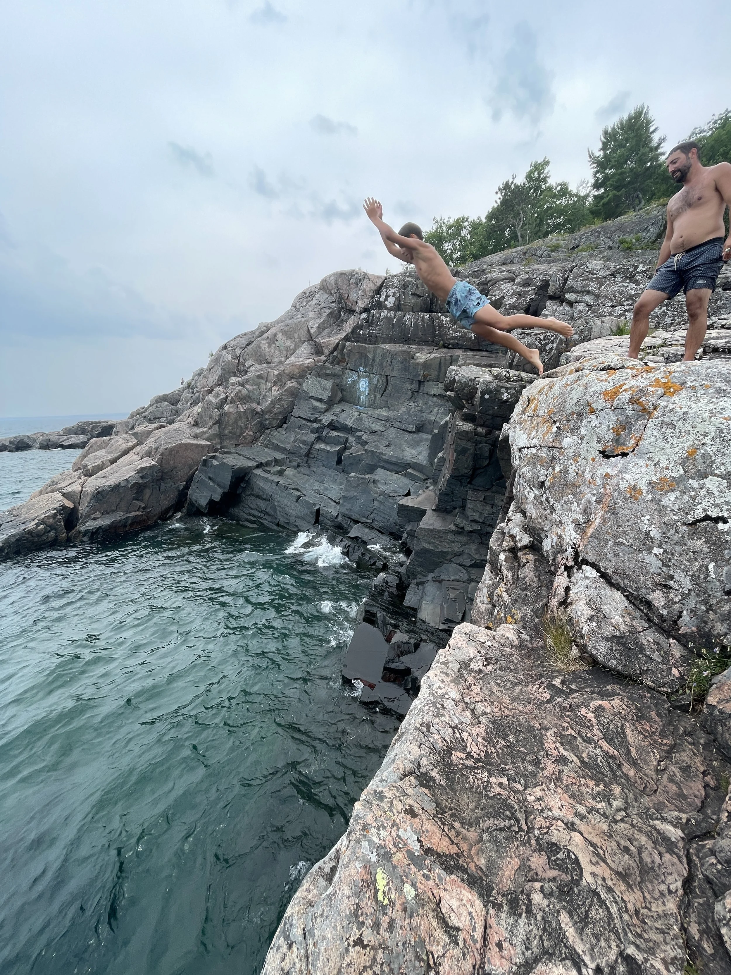 Jumping off rocks | August | Marquette, MI